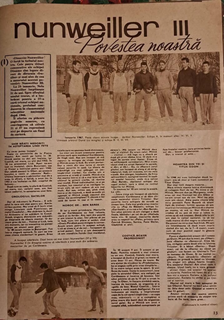 Nelu Nunweiller s-a stins la 79 de ani, la un an şi jumătate după ce Lică, fratele şi colegul său din apărare trecuse în nefiinţă. Reconstituim în rândurile următoare, din propriiile-i mărturii, imaginea unui fotbalist legendar, care a marcat istoria şi prezentul lui Dinamo.