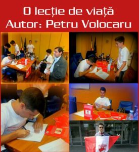 ”Un scriitor e un om care exprimă în scris cu o liminară sinceritate ceea ce a simțit, ceea ce a gândit, ceea ce i s-a întâmplat în viață, lui şi celor pe care i-a cunoscut, sau chiar obiectelor neînsuflețite. Fără ortografie, fără compoziție, fără stil şi chiar fără caligrafie.(…) trebuie să scrie numai acei care au ceva de spus.” spunea Camil Petrescu în Notele de subsol ale romanului Patul lui Procust. E îndemnul adresat Doamnei T. pentru a scrie un roman. O LECȚIE DE VIAȚĂ pe care ne-o propune nouă azi Petru Volocaru e rezultatul acestui îndemn din alt secol… Petru Volocaru ne spune azi povestea propriei vieți, cu o maximă sinceritate,se pare că are ceva de spus. Ne spune că viața nu e ușoară, că indiferent de ceea ce ne e scris să ni se întâmple nu trebuie să de dăm ușor înfrânți ! Cele cinci capitole, trepte ale propriei vieți, se înșiruie ușor, ca mărgelele transparente culese de un copil pe o ață prea subțire… COPILĂRIA e fragilă, plină de încercări și fără de răscolitoare întrebări. Abia ADULTUL de acum privește cu alți ochi acea vârstă, vede greul de pe umerii copilului și caută răspunsuri. La 14 ani pare să înțeleagă ce i-a lipsit: MAMA. Nici copilul și nici adultul PETRU VOLOCARU nu găsește răspuns la întrebarea care l-a adus în pragul disperării: DE CE L-A ABANDONAT MAMA? Ceea ce mi-a atras însă atenția e altceva, felul în care depășește această etapă. Deși rănit, suferind, dezamăgit reușește să-și adune sufletul spart fărâme pentru a continua să trăiască o viață așa cum nu i-a fost dat: o viață liniștită, onestă, dreaptă. Liceul n-a fost greu pentru el, i-a adus confirmarea că poate să-și facă viața frumoasă și în absența ființei care i-a dat viață: a văzut că lumea e frumoasă, că există și oameni buni, că învățând și muncind cinstit poate să obțină mai ușor ce dorește de la viață: o casă, niște prieteni adevărați, iubirea care i-a lipsit în copilărie. Cartea se încheie surprinzător, nu pentru că s-ar fi terminat lecția, ci pentru că are o listă cu CELE MAI IMPORTANTE PERSOANE DIN VIAȚA MEA. E galeria OAMENILOR cu “O” mare care i-au fost alături tânărului Petru Volocaru, i-au fost mentori și umăr pe care să-și sprijine fruntea. Mulțumirea din finalul cărții e firească după acest capitol V. Așadar, O LECȚIE DE VIAȚĂ devine pentru autor un pansament pentru suflet, o introspecție directă, o dovadă a faptului că odată recunoscute problemele ele pot avea rezolvare. Petru Volocaru încearcă să se vindece prin scris, devine personaj pentru a spune și altora că viața trebuie trăită frumos și onest și că uneori se poate supraviețui dezamăgirilor produse de părinți. EL poate deveni pentru mulți exemplul de individ triumfător în lupta cu DESTINUL.”